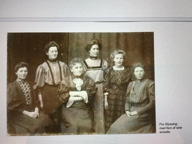 Foto: Personale på alderdomshjemmet, Fynsgade. Fru Glyssing i midten foran.