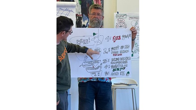 Billeder fra dagens interne workshop om grafisk facilitering - dvs. brugen af grafik og illustrationer i fx undervisningsmaterialer og præsentationer.