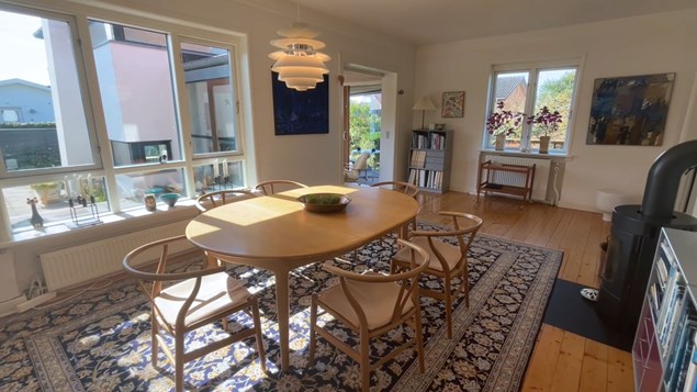 Ejendommen her på Halsagervej i Hjørring er et flot eksempel på en vellykket forening af ældre og nyere arkitektur. Det stemningsfulde hjem udgøres af to sammenhængende bygninger, der byder på masser af plads og mange unikke detaljer.