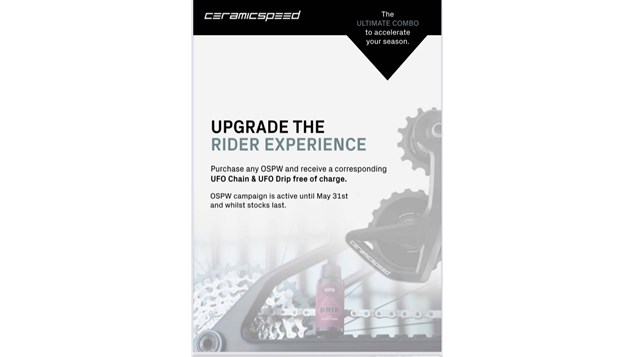 CeramicSpeed har lige nu et godt tilbud til dig: når du køber en OSPW får du GRATIS en UFO kæde og en UFO Drip med uden beregning