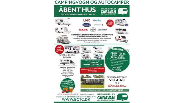 Brønderslev Caravan & Trailer Center inviterer alle til deres åbent hus i weekenden den 9.-10. marts. Begivenheden løber af stablen begge dage fra kl. 10 til 16.