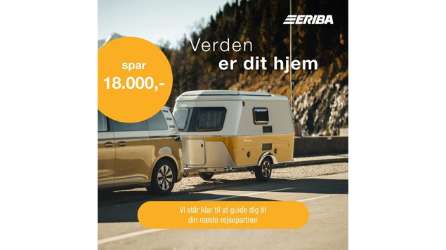 Med ERIBA får du en campingvogn af høj kvalitet, som vil følge dig i mange år. Vognen gemme på en masse detaljer, som skaber en gennemført oplevelse, når du træder indenfor. Lige nu får du 18.000,- i rabat ved køb af en ERIBA*, så skynd dig at kigge forbi butikken og se vores udvalg.