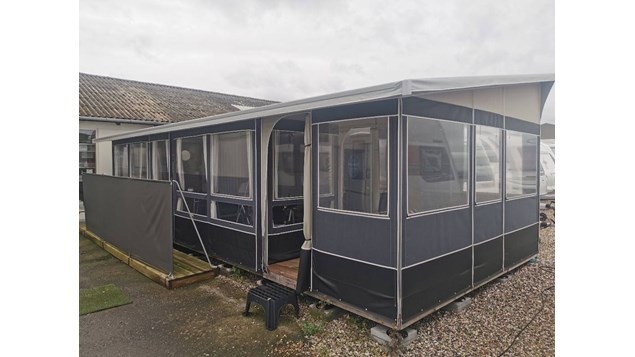 Køb vores udstillingsvillasom som er den nye 370 i 850 cm længde. Opdelt som 650 + 200 cm lukket veranda, skydedør og termoloft. Opsat i december 2022.