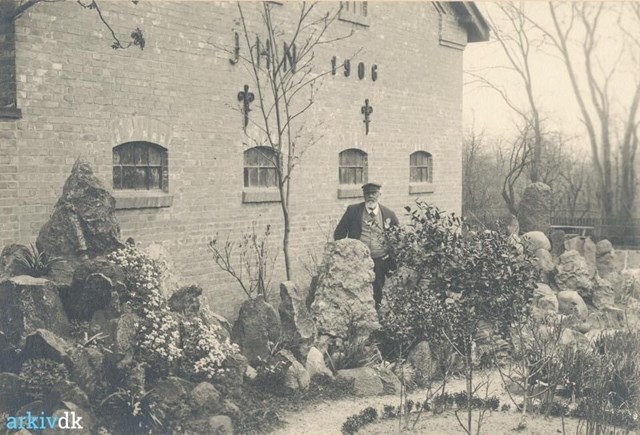 Foto: arkiv.dk // Konsul Jørgen H. Nielsen i sin have, Østergade 4, Hjørring.