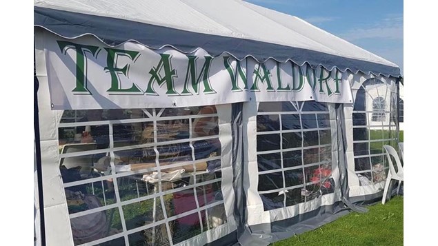 "'Team Waldorf' blev oprettet til minde for min far, Ole Larsen, som selv var erhvervsdrivende og deraf navnet “Team Waldorf”. Vi mistede vores far til kræften i år 2018 og i den forbindelse samlede vi dengang også ind til Hospice Frederikshavn, hvor han havde sine sidste dage."