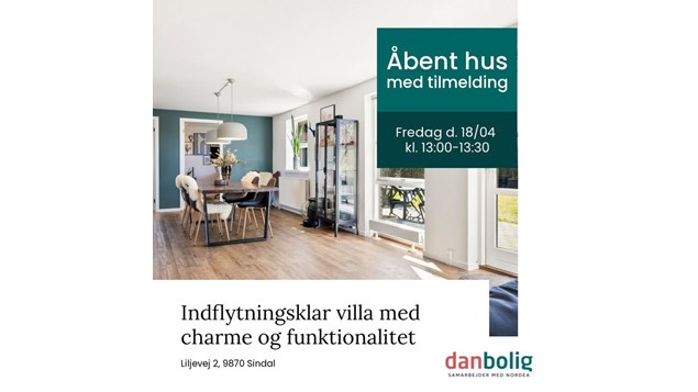 Vi holder åbent hus med tilmelding den 18/4 kl. 13:00-13:30 på Liljevej 2 i Sindal