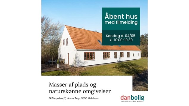 Vi holder åbent hus med tilmelding den 4/5 kl. 10:00-10:30 på Gl Terpetvej 7 i Horne
