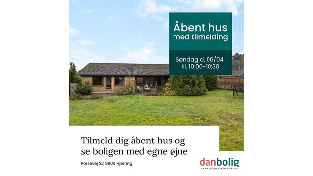 Vi holder åbent hus med tilmelding den 6/4 kl. 10:00-10:30 på Porsevej 22 i Hjørring