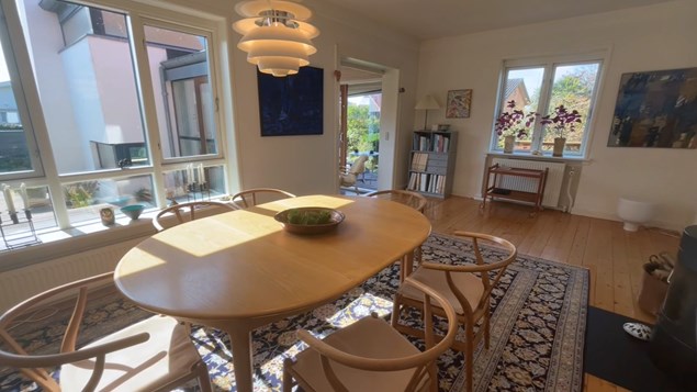 Ejendommen her på Halsagervej i Hjørring er et flot eksempel på en vellykket forening af ældre og nyere arkitektur. Det stemningsfulde hjem udgøres af to sammenhængende bygninger, der byder på masser af plads og mange unikke detaljer.