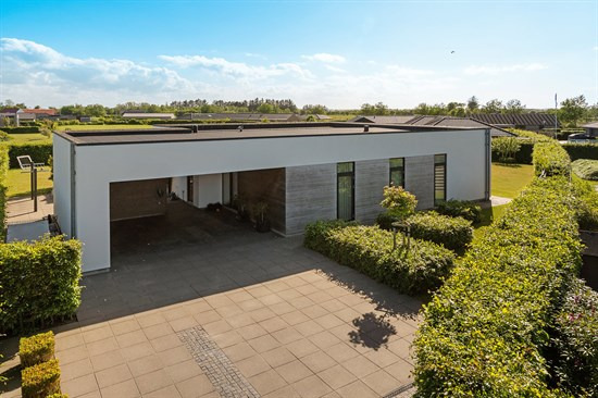 Udearealerne er skabt som en naturlig forlængelse af boligen. Haven er professionelt designet af Unika Haver og fremstår særdeles stilren, arkitektonisk og nem at holde. Her er der tænkt i rolige linjer, lækre opholdsrum og minimal vedligeholdelse, så tiden kan bruges på nydelse frem for arbejde. De mange terrassedøre giver direkte adgang til haven fra boligens rum og gør udelivet til en integreret del af hverdagen. Den store carport sikrer både overdækket parkering og god plads til opbevaring.