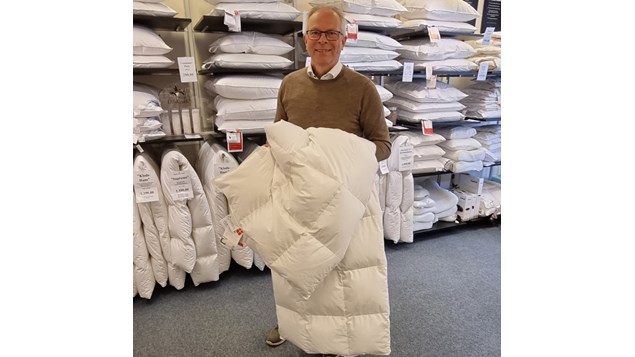 Hos Fjerrenseriet på Østergade 24 i Hjørring, finder du lige nu dyner og puder til en ekstraordinært lav pris. Indehaver Claus Penderup forklarer entusiastisk: "Vi har en fantastisk pris på to forskellige dyner og puder fra Ringsted Dun, hvor du simpelthen får Danmarks laveste priser."