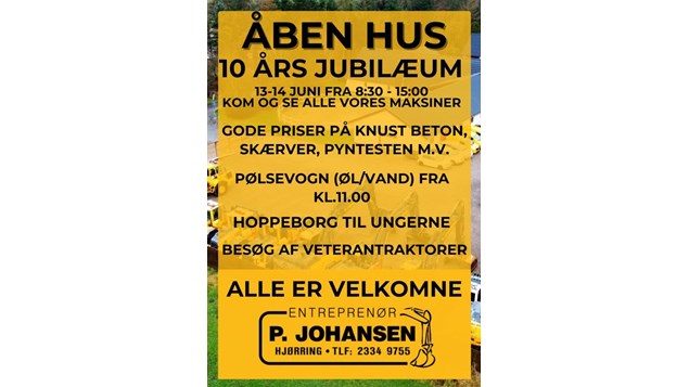 Entreprenør P. Johansen ApS inviterer til åbent hus for at fejre 10-års jubilæum