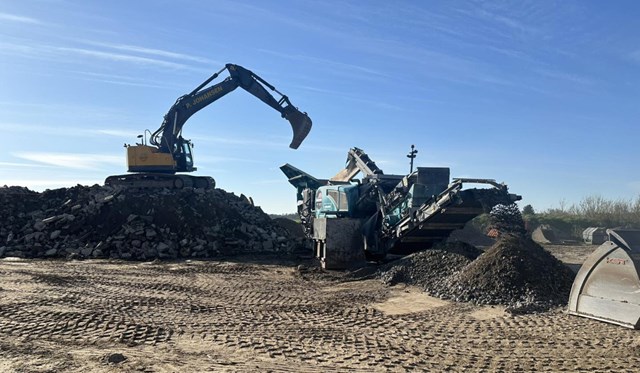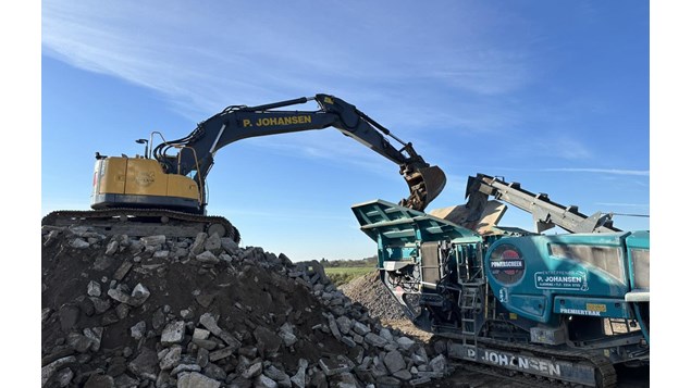 "Desuden har vores maskiner kraftige magneter, der effektivt adskiller jern fra de øvrige materialer. Dette betyder, at vi kan håndtere beton, tegl, brokker, asfalt og sten med høj præcision og renhed."