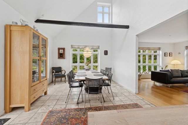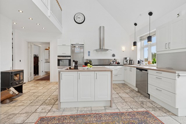 At charme og landidyl kan eksistere i en så stor og moderne villa er lidt af et mesterstykke. Men det er netop tilfældet i denne smukke ejendom fra 2007, der vil give familien med pladskrævende hobbyer og store armbevægelser ideelle rammer om hverdagen.