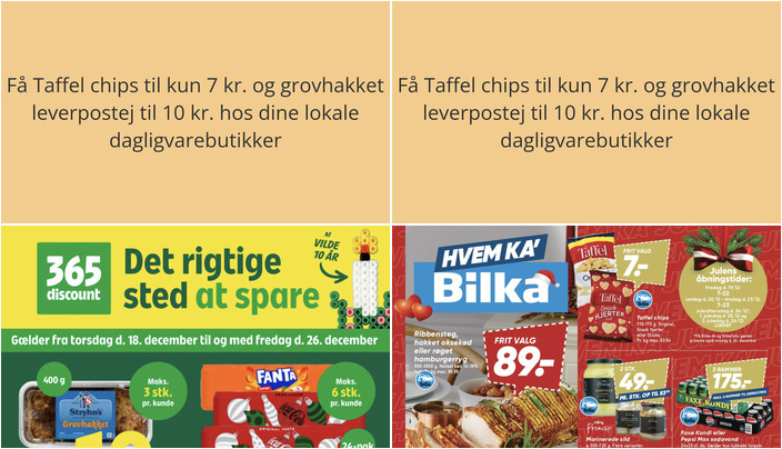 Få Taffel chips til kun 7 kr. og grovhakket leverpostej til 10 kr. hos dine lokale dagligvarebutikker