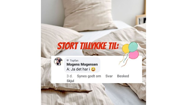 Du blev den heldige vinder af 2 lækre sengesæt fra Sødahl Dess.: Noble Gevinsten kan afhentes i butikken