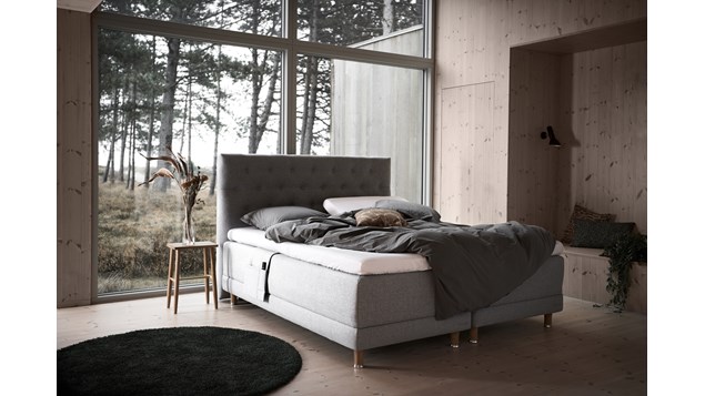 Sengen kan nemt justeres med en trådløs fjernbetjening, hvilket muliggør justering af både hoved- og fodende. Den negative benhældning er en ekstra funktion, der hjælper med at mindske trykket på bækkenpartiet, hvilket bidrager til en endnu bedre soveposition. Produktet fås i syv elegante farver og leveres med matchende gavle for en gennemført stil.
