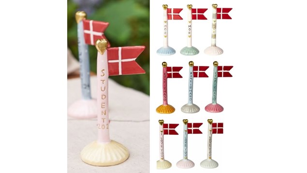 Flag med tekst 130,00 kr. pr.stk. i ass. farver
