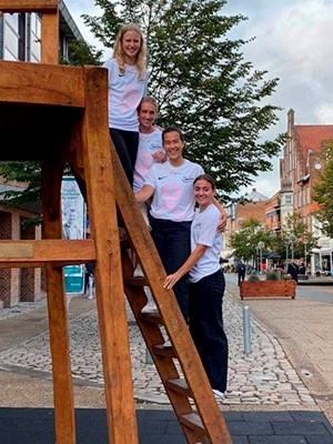 (Foto: Fortuna Hjørring-spillere i Støt Brysterne-trøjer// Torben Vandsted)
