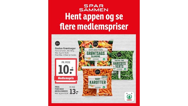 Hent medlemspriser på grøntsager i SPAR SAMMEN appen siger SPAR Skallerup A/S