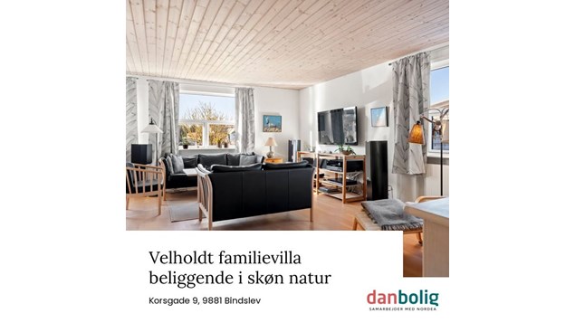 Korsgade 9 i Bindslev er en rummelig og velholdt familievilla, der kombinerer hjemlig komfort med naturskønne omgivelser.
