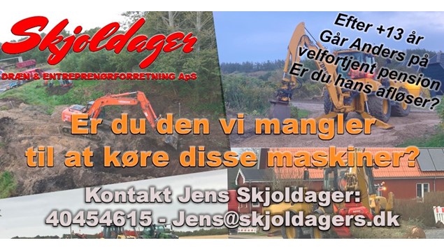 Indehaver Jens Skjoldager udtaler: "Vi søger en person, der har erfaring med de relevante maskiner og som kan arbejde selvstændigt. Har man erfaring med dræning, er det en fordel, men det vigtigste for os er, at man har et godt humør og gåpåmod. Så skal vi nok lære dig resten!"