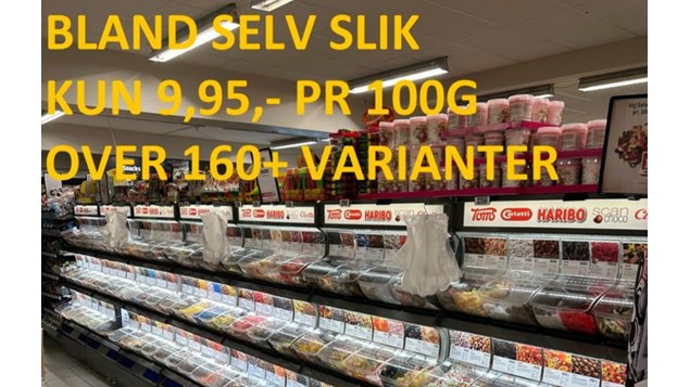 Hver fredag og lørdag kan kunderne nyde en sød weekend med et utroligt tilbud på bland-selv slik til kun 9,95 kr. pr. 100g.