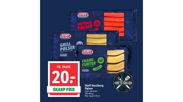 Det er tid til at tænde op i grillen og lige nu kan du gøre et godt kup på STEFF HOULBERG pølser! Du får 350-450 g. for 20 kr.