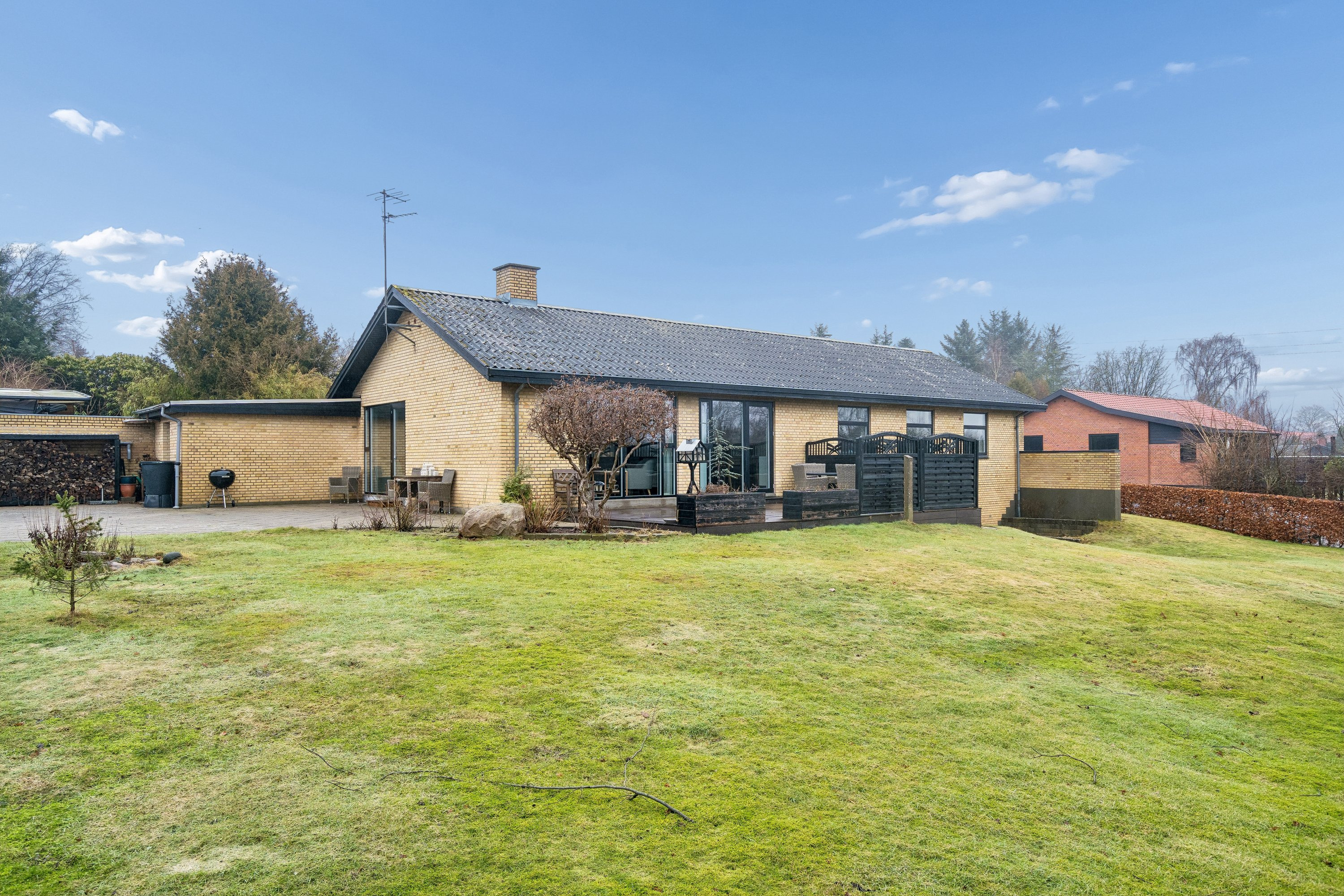 På den anden side har vi villaen på Porsevej 10. Denne bolig giver lidt ekstra plads med sine 166 kvadratmeter fordelt på 6 rum. Grunden her er noget mindre med 1.028 kvadratmeter.
