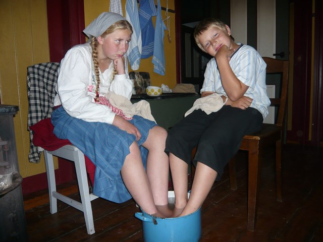 Der skulle for eksempel hugges brænde, tændes op i komfuret, luges i køkkenhaven, køerne skulle malkes med de bare næver, dyrene skulle fodres, der skulle muges ud, vandet skulle hentes ved pumpen, der skulle graves kartofler op til aftensmaden og bages til eftermiddagskaffen.