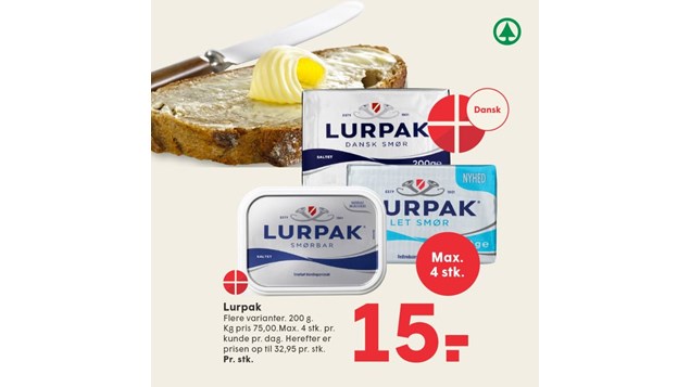 Glem ikke Lurpak på din indkøbsliste! Vi har fyldt hylderne op... og til en skarp pris!