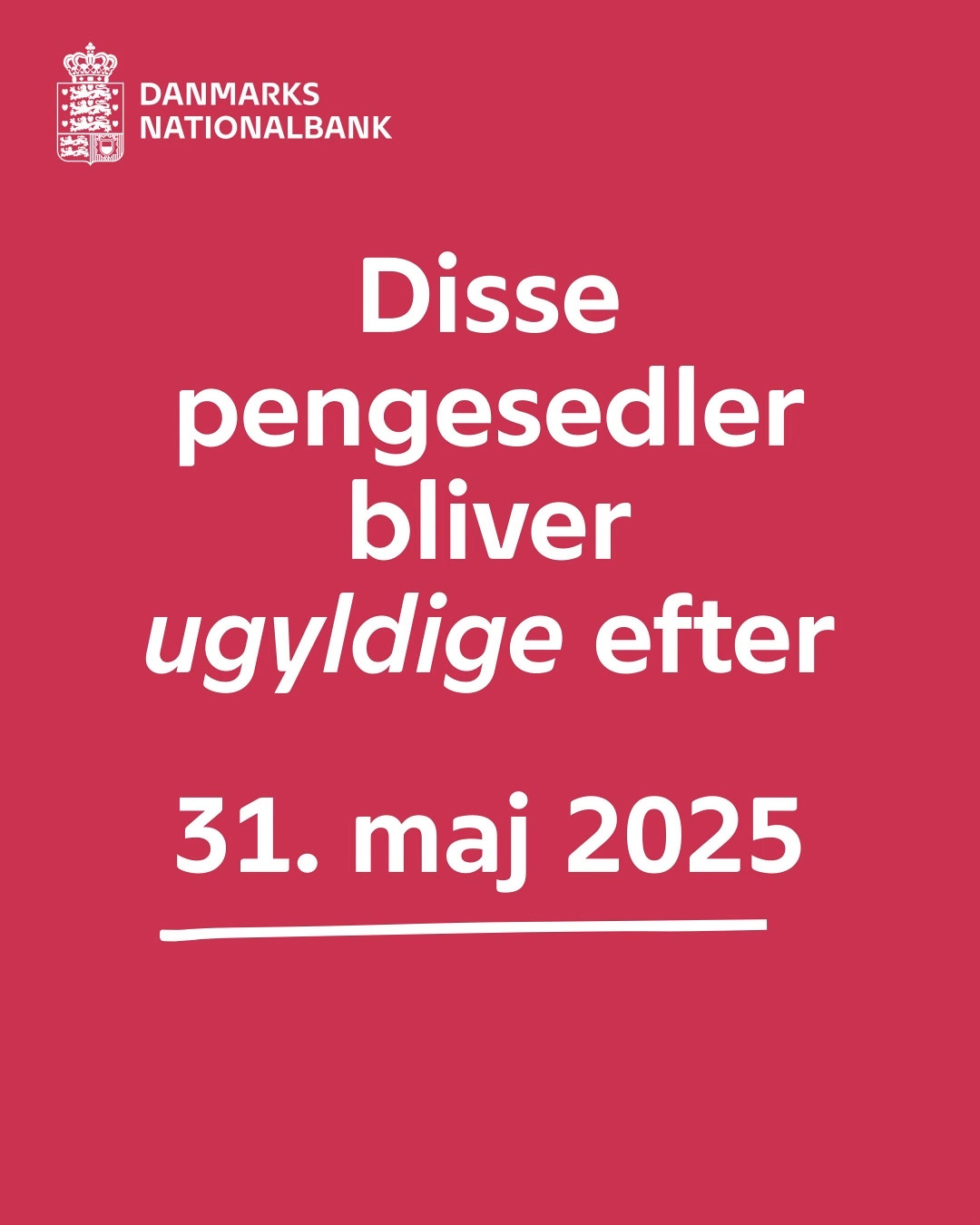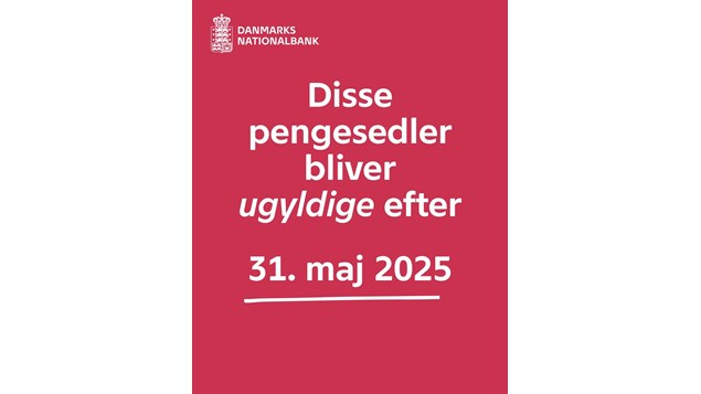 • Du kan sætte sedlerne ind på din bankkonto til og med 31. maj 2025.