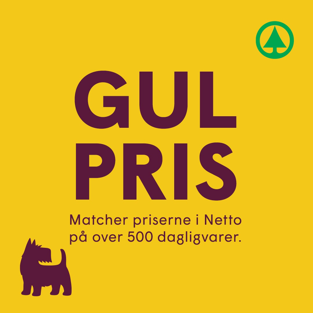 Med GUL PRIS matcher vi priserne i Netto på over 500 hverdagsvarer. Kig efter det gule mærke i butikken – så ved du, at du får discountpris.