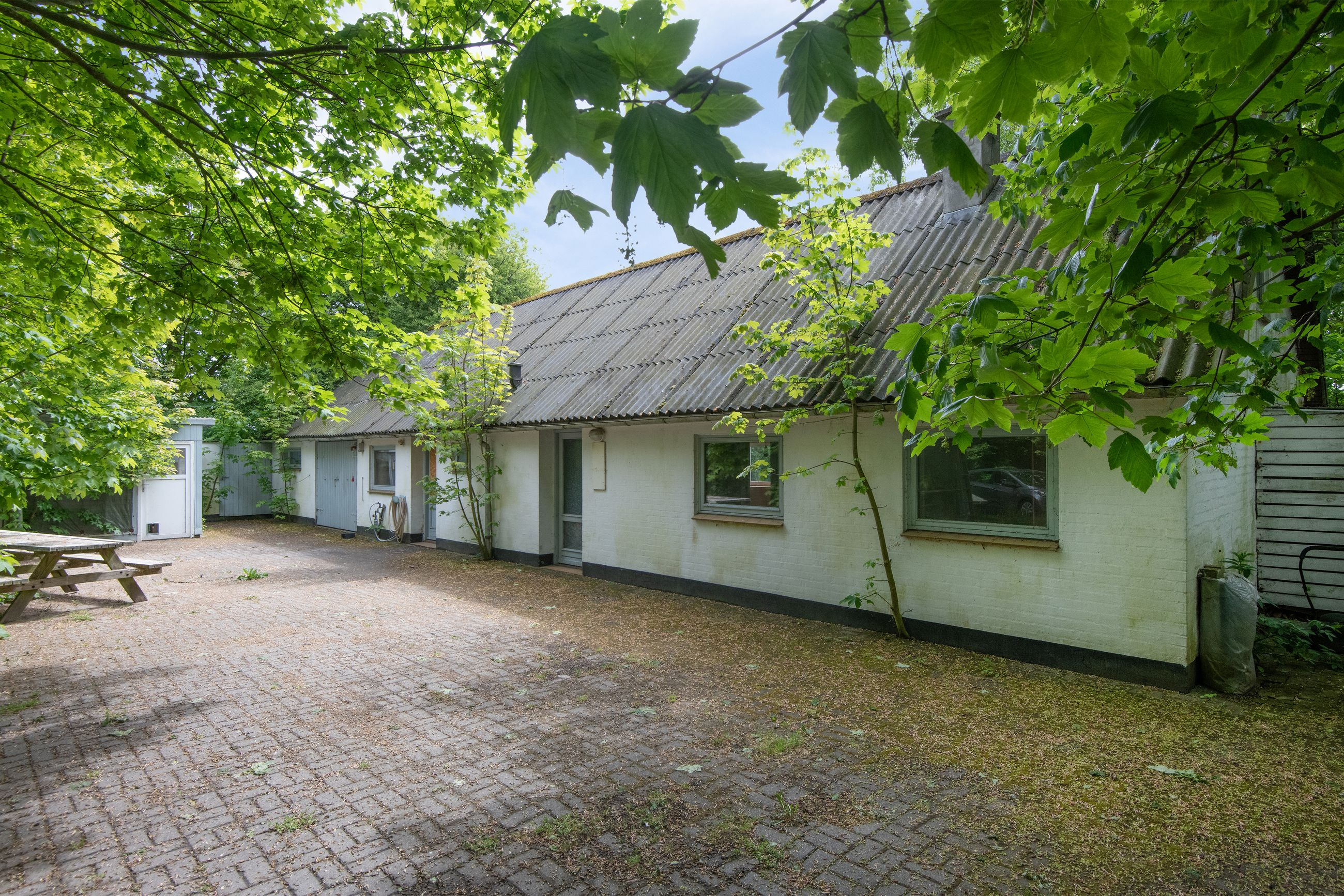 På grunden forefindes endvidere en del udhuse/skure/overdækninger, som ikke er registreret på ejendommens BBR-ejermeddelelse og dermed ikke godkendt.