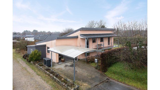 Villaen er bygget i 1985 og er løbende opdateret. Der er brugt gode gedigne materialer overalt med vægt på at tilgodese naturlighed, allergivenlighed og energi. Det er et rigtig dansk håndværkerhus i sydlandsk stil med murede skillevægge og indervægge. Der er en enkelt let skillevæg mellem stue og et værelse. Huset er pudset både udvendigt og indvendigt. Udvendigt er malet med med kalkproduktet Skalcem 100. Nyere listetækket tagpaptag med 250 mm isolering. Villaen har ensrettet taghældning og er udnyttet i 3 forskudte plan.