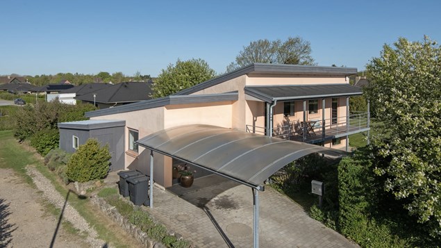 Villaen er bygget i 1985 og er løbende opdateret. Der er brugt gode gedigne materialer overalt med vægt på at tilgodese naturlighed, allergivenlighed og energi. Det er et rigtig dansk håndværkerhus i sydlandsk stil med murede skillevægge og indervægge. Der er en enkelt let skillevæg mellem stue og et værelse. Huset er pudset både udvendigt og indvendigt. Udvendigt er malet med med kalkproduktet Skalcem 100. Nyere listetækket tagpaptag med 250 mm isolering. Villaen har ensrettet taghældning og er udnyttet i 3 forskudte plan med 139 m2 bolig + 25 m2 indrettet til hall/entré, samlet opvarmet areal i alt 164 m2.