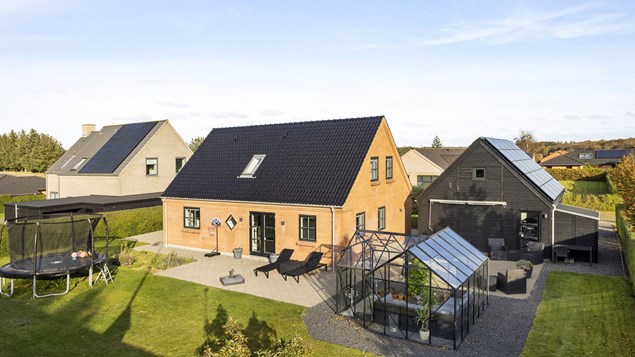En af de store fordele ved denne villa er den imponerende garage på 52 kvm, der ikke kun giver plads til bil, men også har et stort loftrum med god opbevaringsplads. Udearealet er som et fredfyldt fristed med fire terrasser, der er placeret på alle husets sider, så man kan finde både sol og skygge hele dagen. Haven er godt afskærmet og giver et privat rum, mens et hyggeligt orangeri gør det muligt at nyde udendørslivet i komfort uanset vejret.