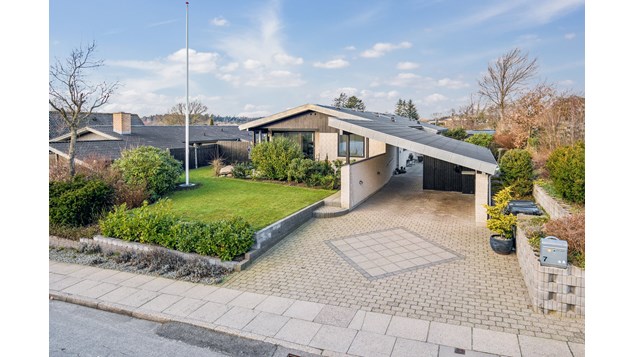 Udover beboelsen er her god carport med forberedelse til ladestander, udhus samt en dejlig overskuelig have omkring villaen. Du finder ligeledes gode terrassekroge og kan til enhver tid finde skygge, sol og læ i samtlige verdenshjørner. På den vestvendte terrasse har man et fantastisk "view" ud over Ulvegravene samtidig med, at man kan følge solnedgangen!