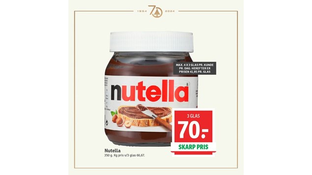 Tre glas Nutella til salg for kun 70 kr i denne uge