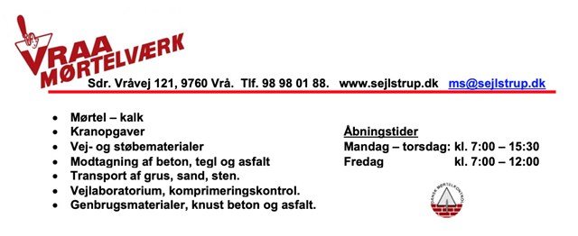 Hos VORES Hjørring støtter vi de lokale erhverv i- og omkring byen. Derfor kan vi nu også løfte sløret for vores samarbejde med Sejlstrup Entreprenørforretning A/S og Vrå Mørtelværk. Vi vil fremadrettet agere lokalt talerør for virksomhederne og herunder kan du få et kort indblik i, hvilke services, de to nordjyske firmaer tilbyder.