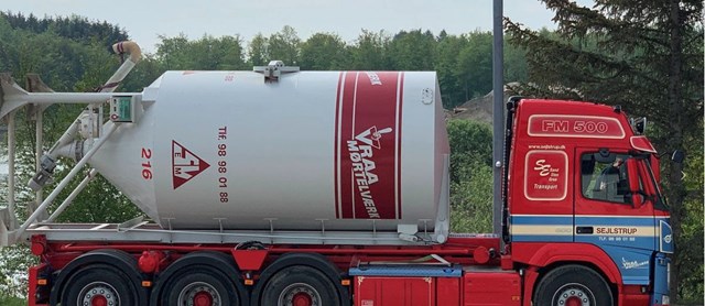 Foto: Vrå Mørtelværk // 15 ton silomørtel på vej til byggepladsen