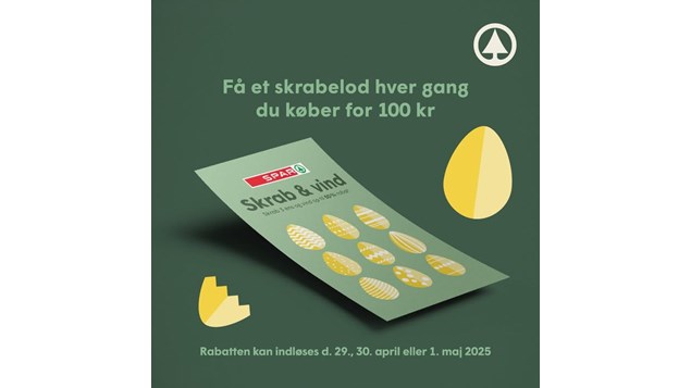 Få et skrabelod hver gang du køber for 100 kr.* Rabatten kan indløses d. 29., 30. april eller 1. maj 2025.
