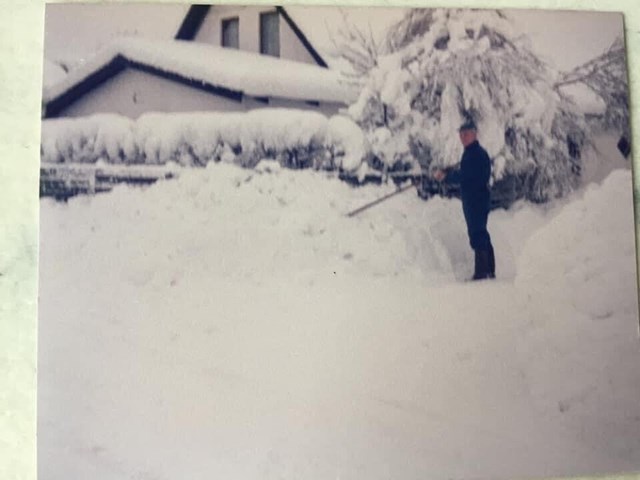 Det var også sådan en vinter, hvor postbudet kunne komme til mine forældre med post ( pr. gåben) fordi vi boede ud til landevejen, men han måtte opgive andre, der havde en lang privatvej.